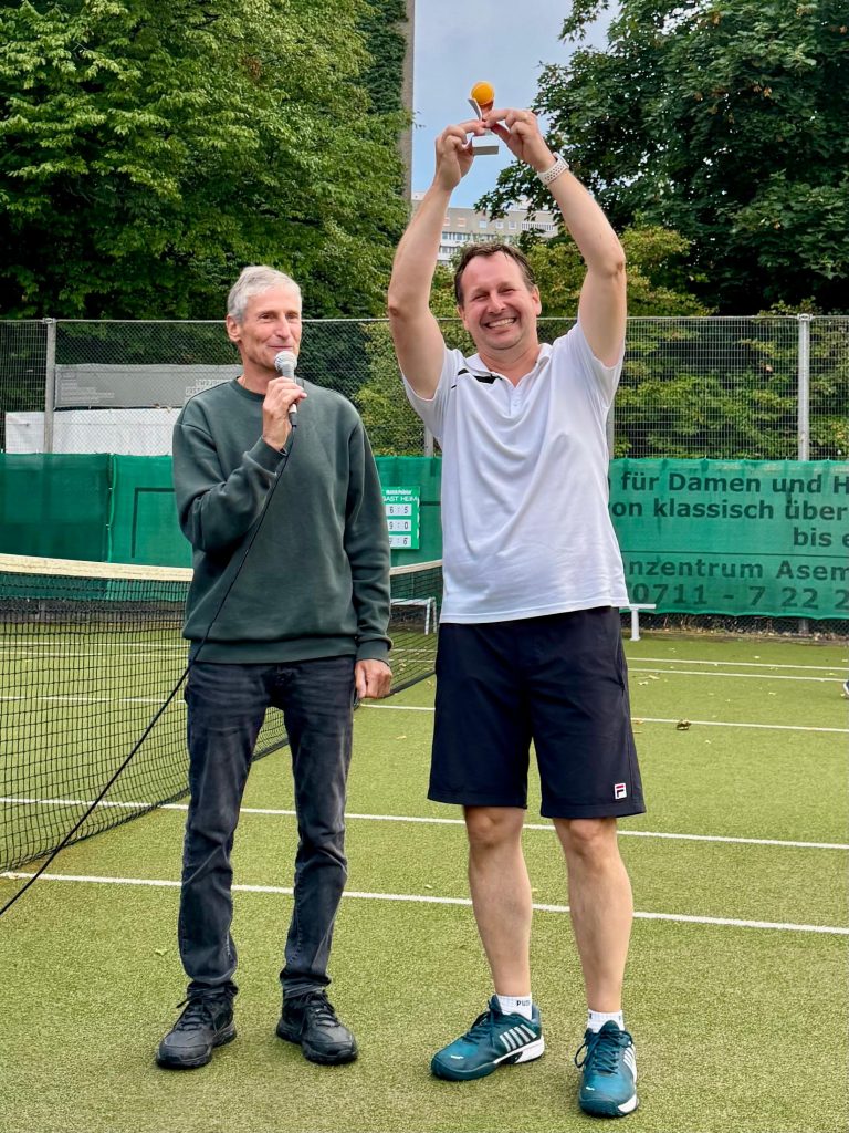 Der Wettergott zeigte sich launisch: Umkämpfte Spiele und einige Regenschauer brachten den Zeitplan ins Wanken. Nur das Herren-Duell um Platz 5 zwischen Eugen Schwarzenberger und Frank Ederle ließ sich selbst vom strömenden Regen nicht stoppen – echte Kämpfer eben!